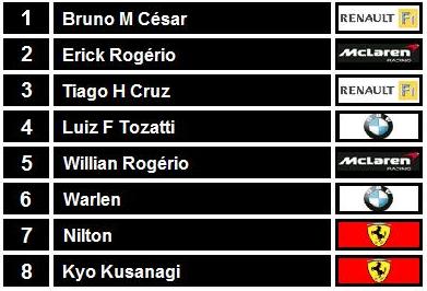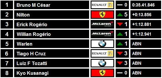 com Nilton da Ferrari em segundo e Erick e Willian ambos da Maclaren